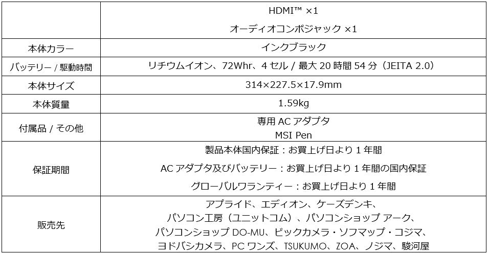 一般的なフルHDよりも高い解像度のディスプレイを採用し、より高精細な映像表示を可能にしました。加えて、アクティブスタイラス「MSI Pen」によるペンタッチ機能に対応し、まるで本物のペンのような書き心地でメモやスケッチなどを行うことができます。