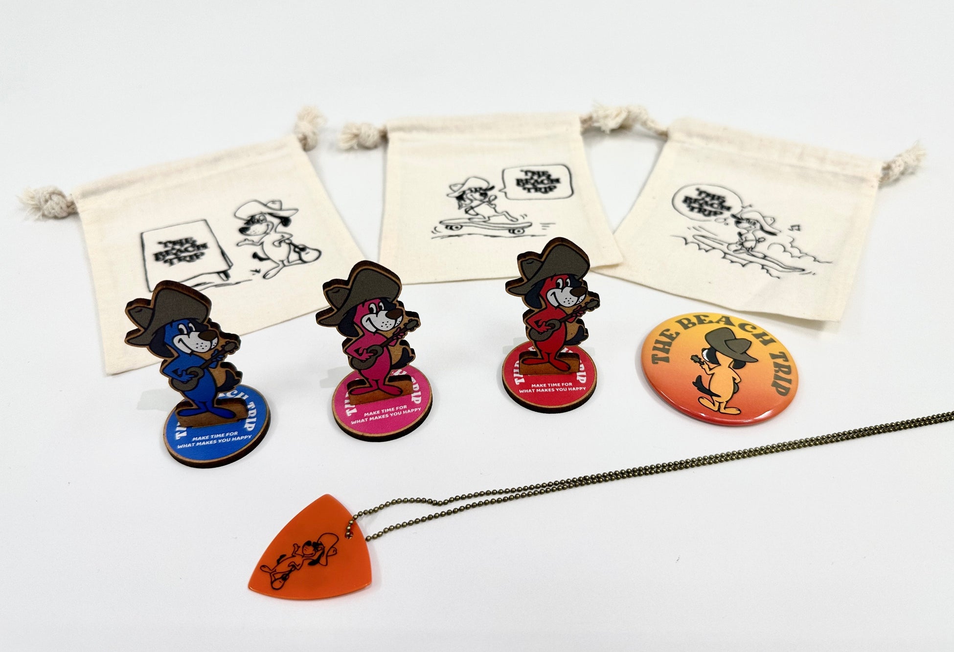 シンガーソングライター「平井 大」のビーチフェス『THE BEACH TRIP』マスコットデザインのカプセルトイ。「GUITAR PICK NECKLACE」、手のひらサイズの「MDF STAND」、「CAN MIRROR」、