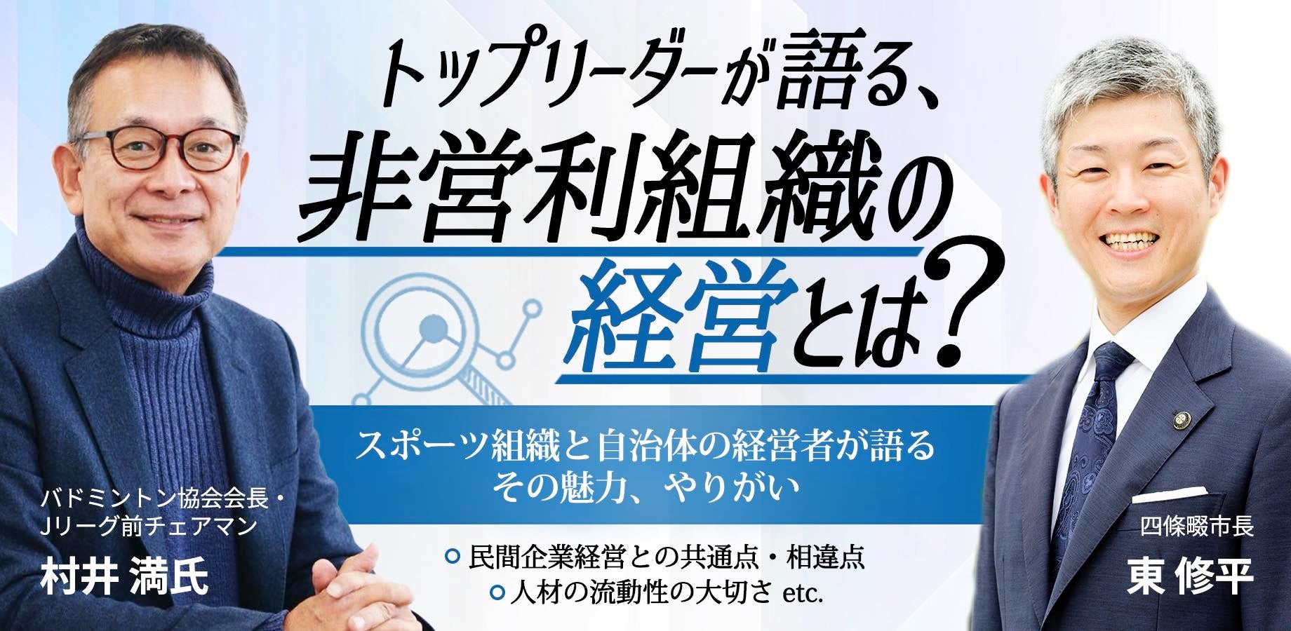10月12日(土)20:30~には、日本バドミントン協会会長・Jリーグ前チェアマンの村井満氏とのオンライン対談イベントを開催。「トップリーダーが語る、非営利組織の経営とは?」をテーマに、スポーツ組織と自治体の経営について、民間企業と比較しながら、その魅力ややりがいに迫ります。