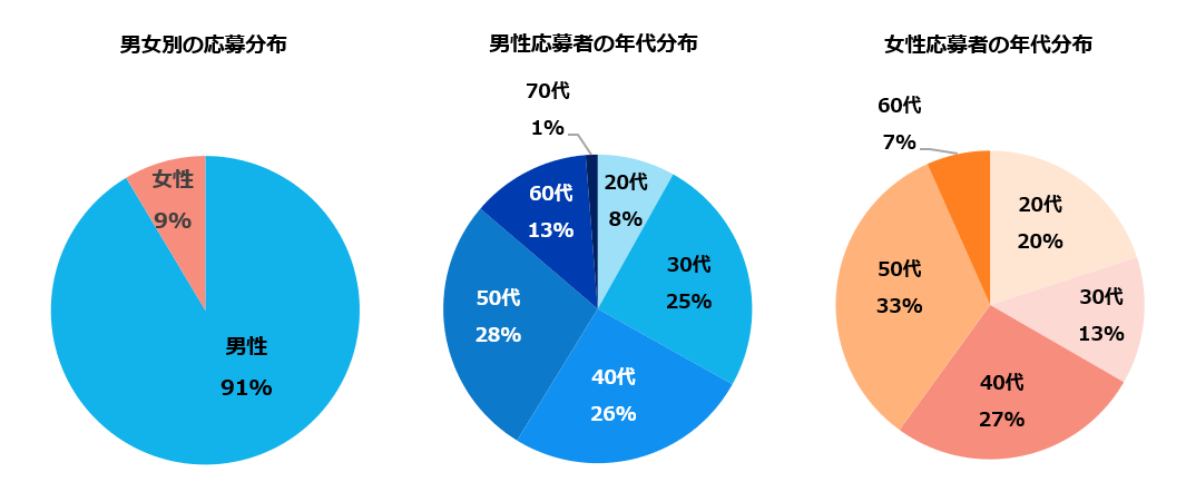 応募者分布を見ると、男女問わず20代〜70代まで幅広い世代からのご応募をいただいています。特に、40代までの比較的若い世代が男女ともに過半数を占めている状況ですので、若い世代の地方自治への関心の高さも感じております。