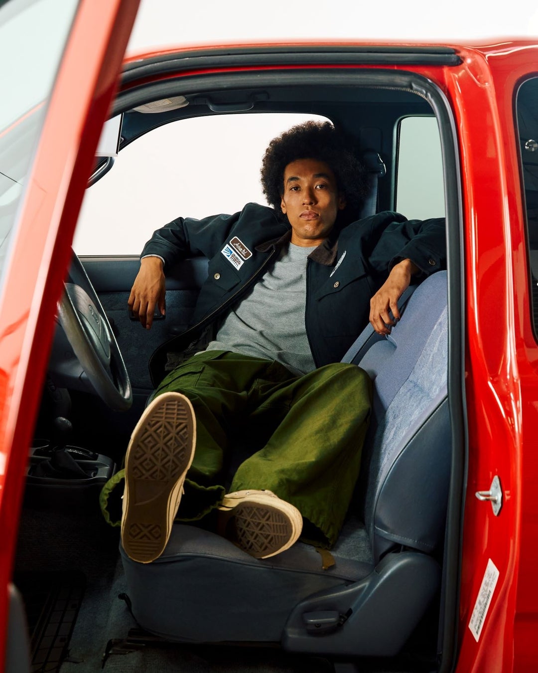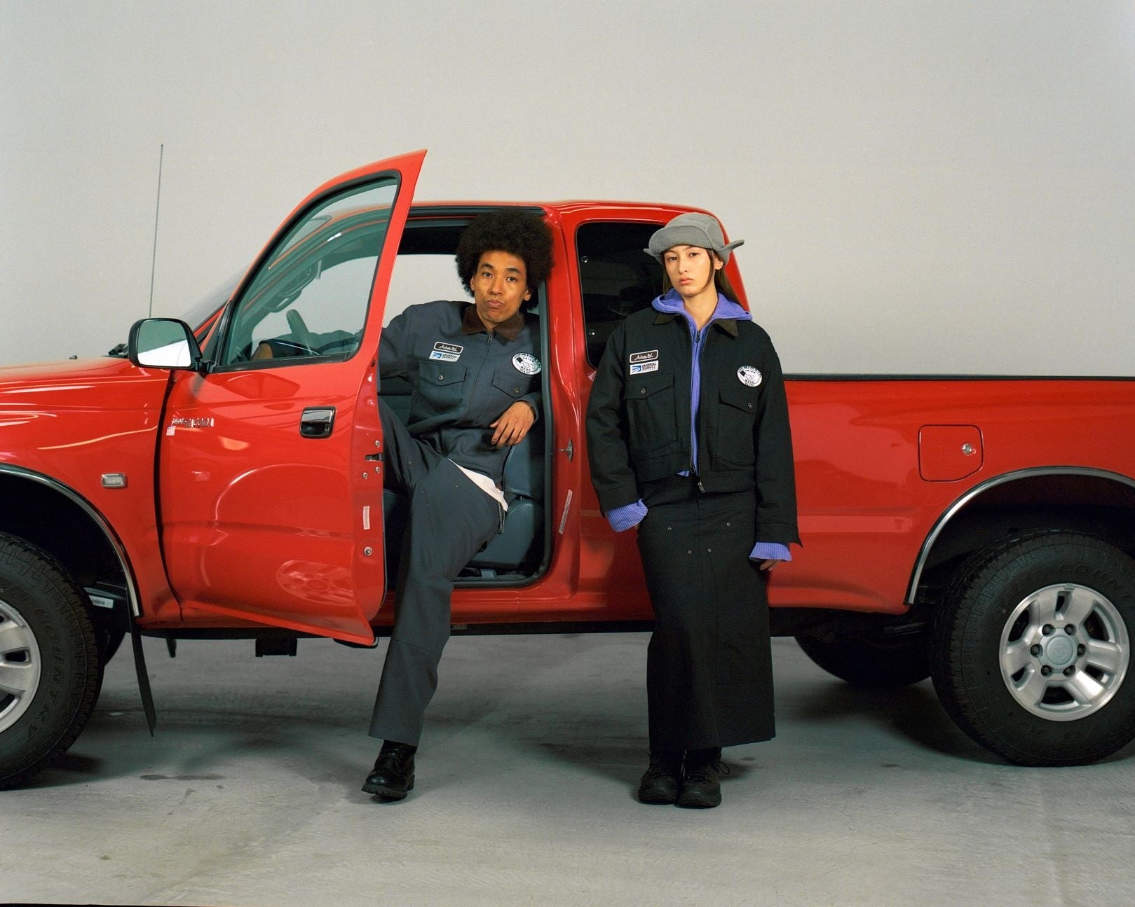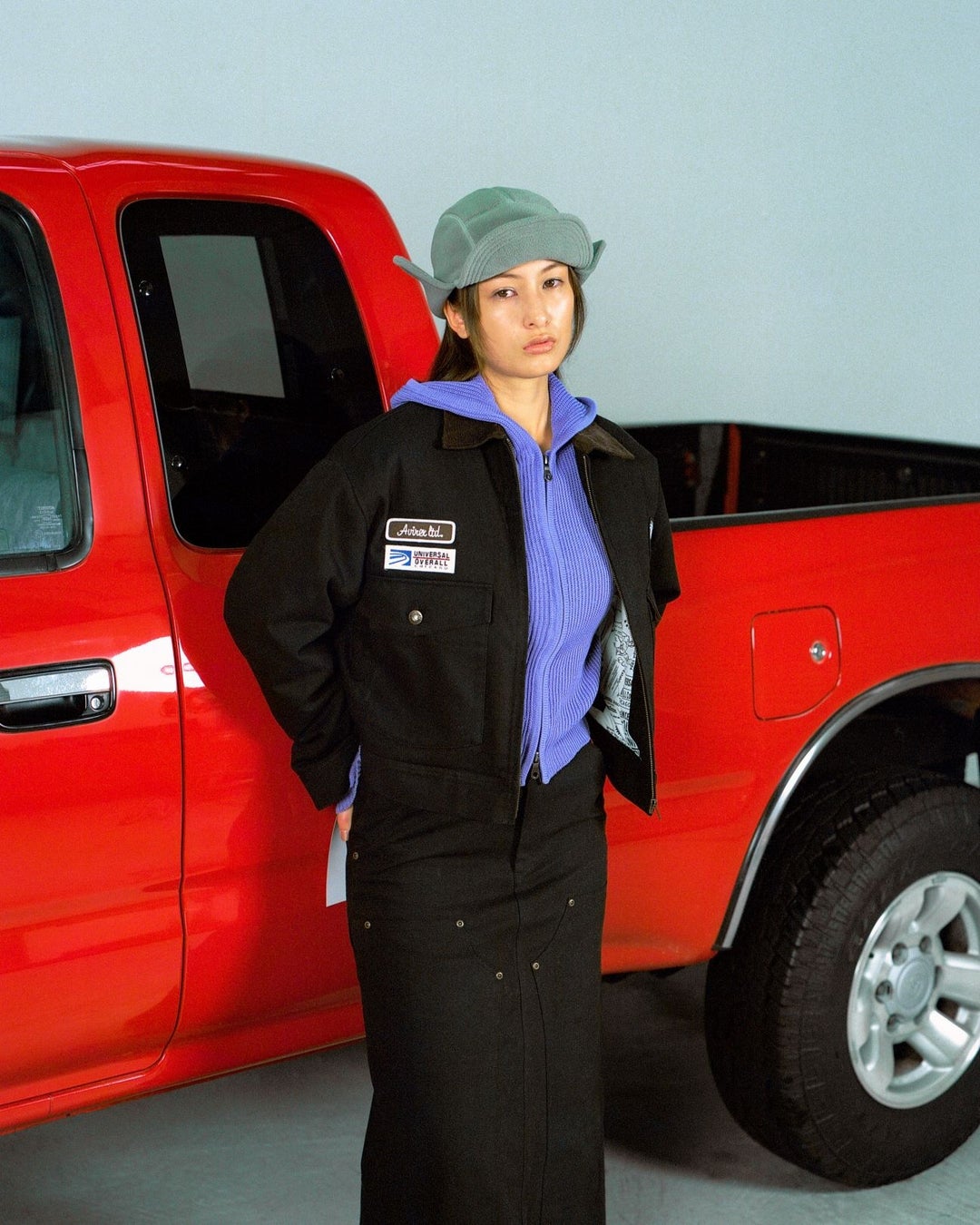 やボトムのスレキには「UNIVERSALOVERALL」100周年記念のスペシャルな総柄をプリント。両者の魅力を掛け合わせたコレクションになっています。