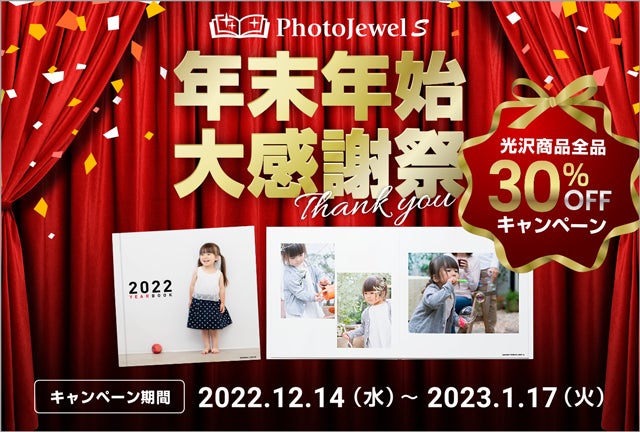 キヤノンのフォトブック、高級感のある仕上がりで人気の光沢商品が30%OFFで購入できるキャンペーン“PhotoJewel S 年末年始大感謝祭”を開催!