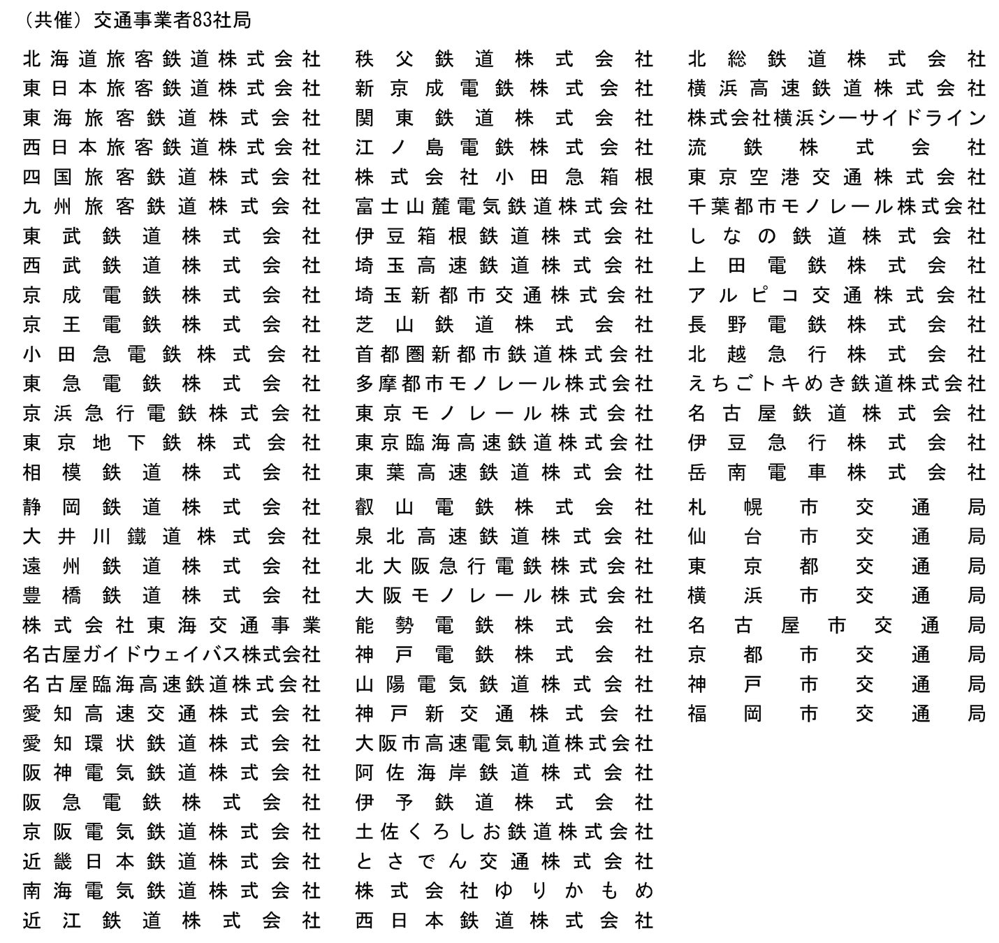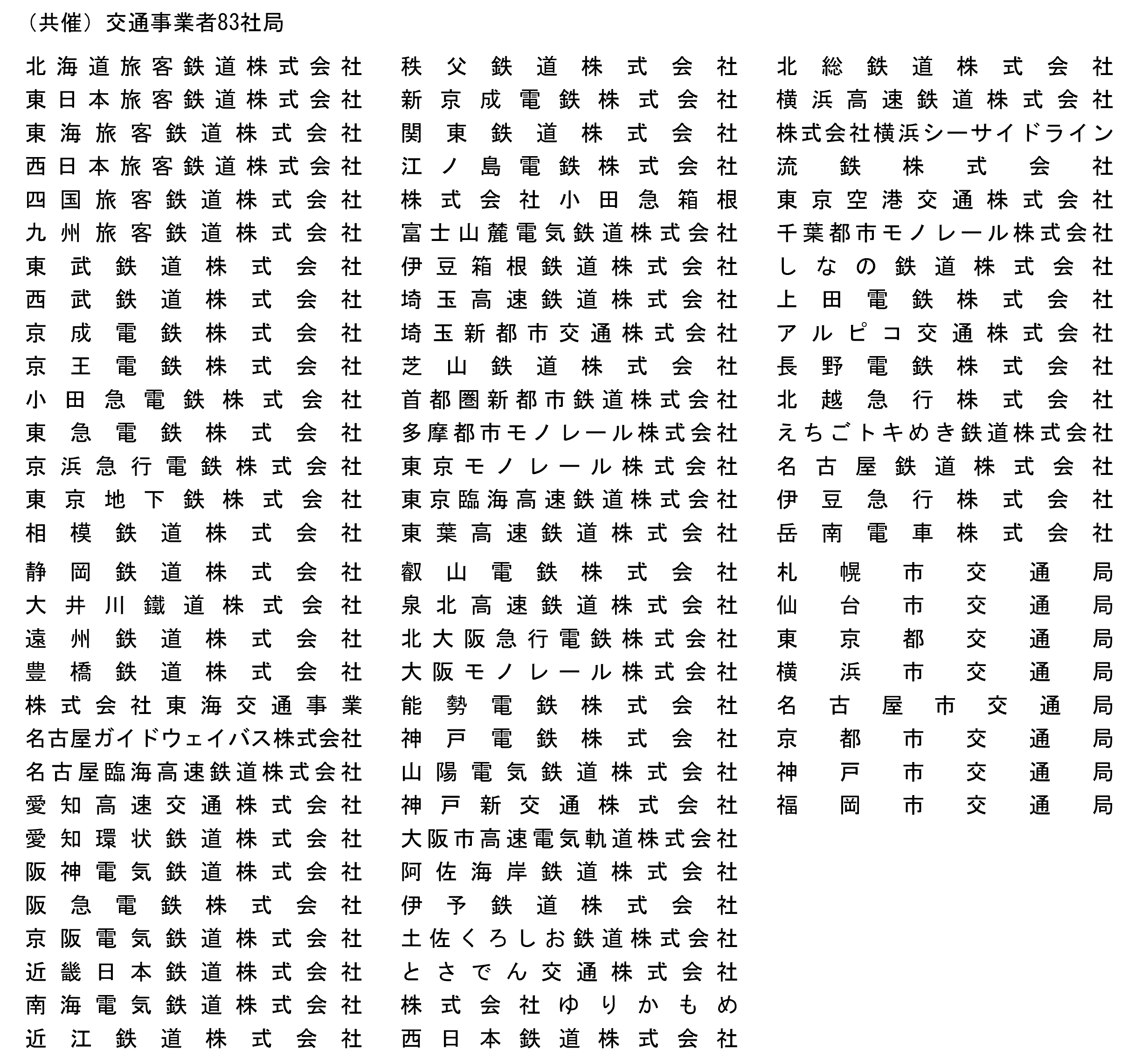 交通事業者83社局、障害者団体を含む10団体で実施します。