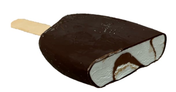 - なめらかなミントアイスクリームに生チョコソースをマーブル状に充填し、口どけの良いセミスイートチョコで包み込んだバーアイスです。