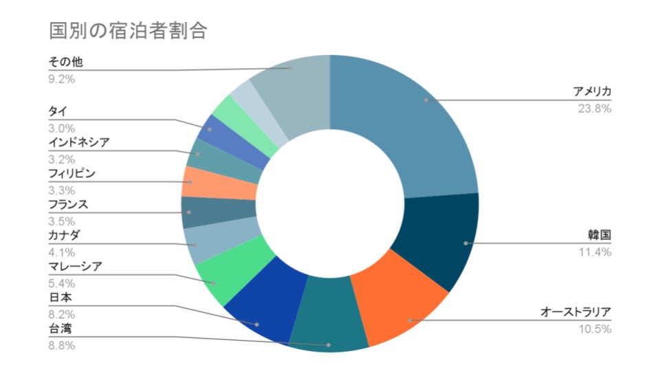 上位4か国で訪日客の半分以上の割合となっております。宿泊者数の総数も先月より増えてきている中で、国別の宿泊者の割合はだいぶ固まってきています。
