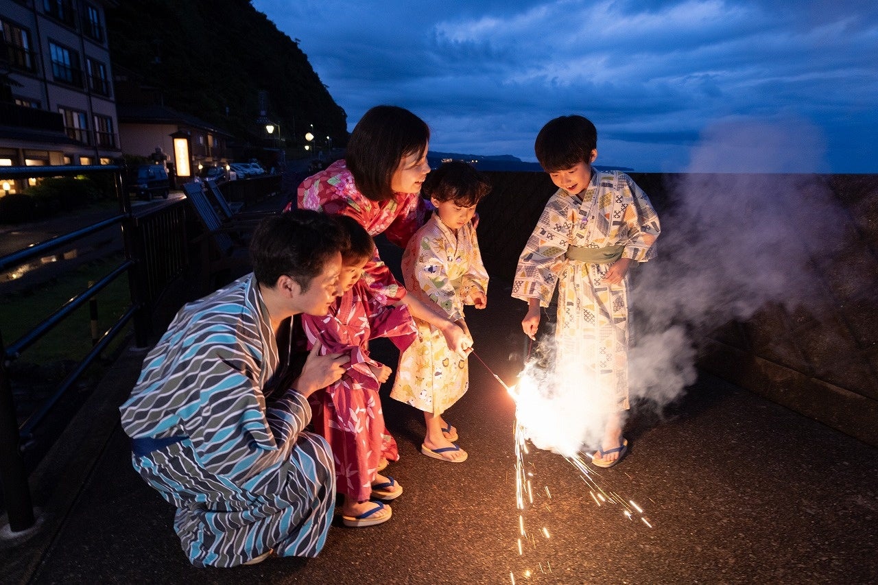 イカ焼き&黒はんぺん、湯上りビール、朝のトコロテン、温泉卓球、記念日のお祝いや連泊にはランチ特典など、嬉しい無料のおもてなし。その他、ガラポンチャレンジ&花火プレゼント(6/30まで)や、レイニーキャンペーン(6/1~7/18)もお楽しみに。
