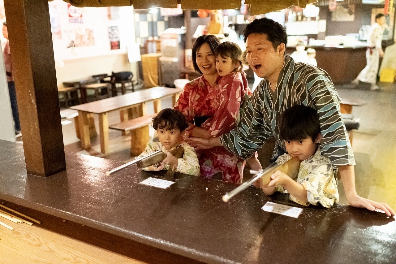 昭和レトロな横丁で、射的やスマートボール、ヨーヨー釣りなどの縁日遊び、伊豆焼酎や昔懐かしいラムネなど、昭和の世界が気軽に楽しめます。