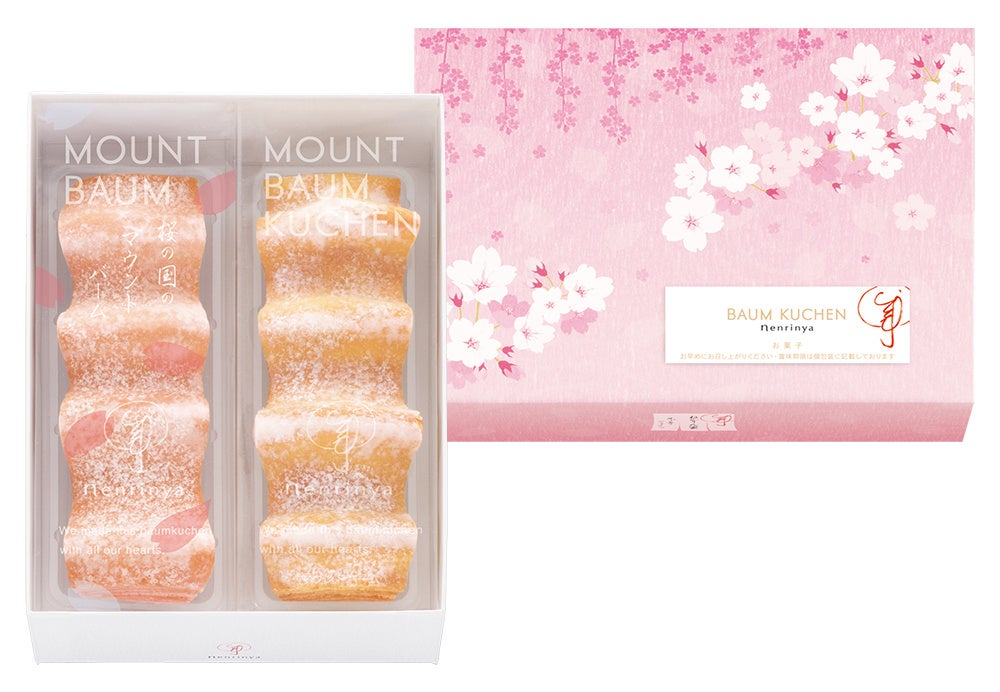 ねんりん家、春の詰合せ。濃厚なバター香る代表作「マウントバーム しっかり芽」。ほのかに桜香る春限定「桜の国のマウントバーム」。ふっくらジューシーな「ストレートバーム やわらか芽」。