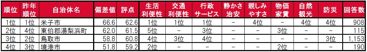 街の住みここちランキング2023<鳥取県版>自治体TOP4 因子別順位