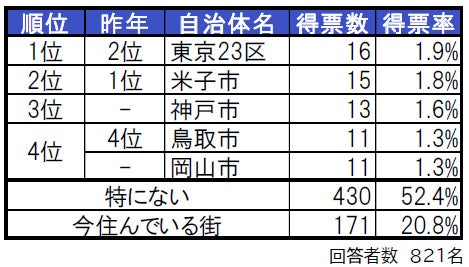 住みたい街は、1位東京23区、2位米子市、3位神戸市。