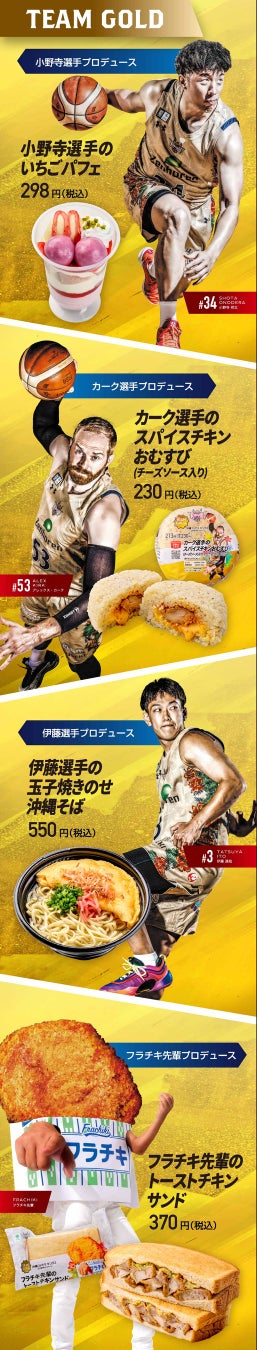 さらに今回も「TEAM GOLD」、「TEAM NAVY」に分かれて、商品をご購入いただいたお客様の投票により勝敗を決める対決も実施いたします。ぜひ、それぞれの商品をご賞味いただき、投票へご参加ください。勝利チームへ投票したお客様の中から抽選で、オリジナルコラボグッズや観戦チケットなど豪華景品が当たるキャンペーンも同時にスタートいたします。