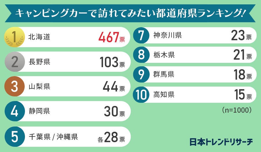 【男女1000人に聞いた】キャンピングカーで訪れてみたい都道府県ランキング!