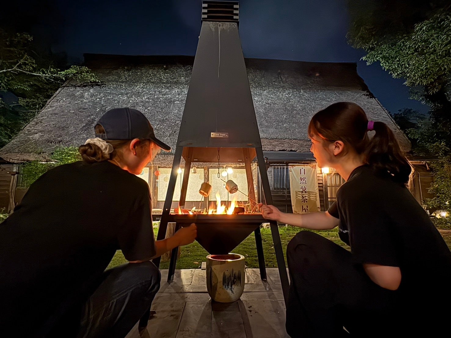 毎晩20時の焚き火と花火。合掌造りの前で刻む「エモい夜」