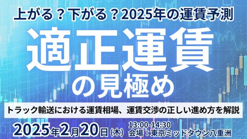 日本最大級の物流コンサルティングファーム 船井総研ロジ株式会社(本社:大阪市中央区、代表:橋本直行、以下「船井総研ロジ」)は、2024年2月20日(木)13:00~14:30、「上がる!?下がる!?2025年から始まる適正運賃セミナー」を東京ミッドタウン八重洲で開催いたします。
