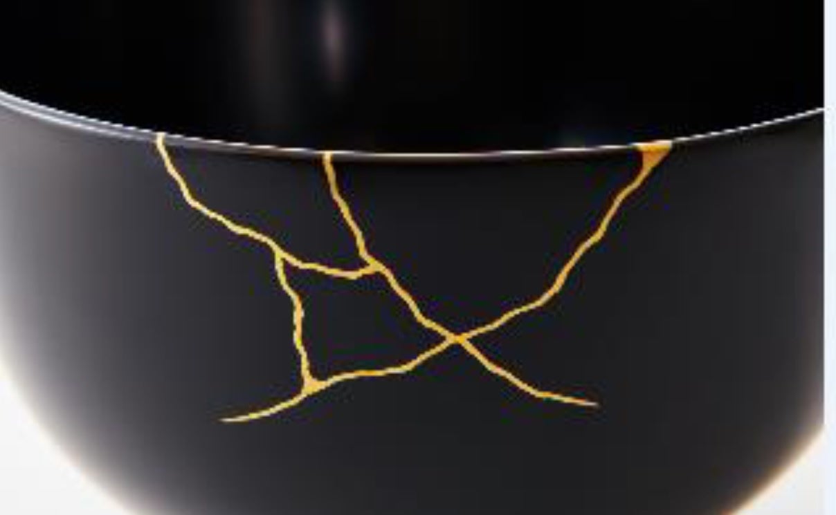 震災後に破損した器を集めて金継風に修復したのが、金繋ぎシリーズの始まり。