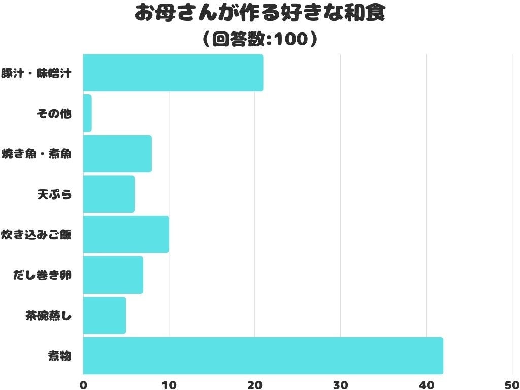 煮物はお母さんの作る料理の中でも人気が高いことが分かります。