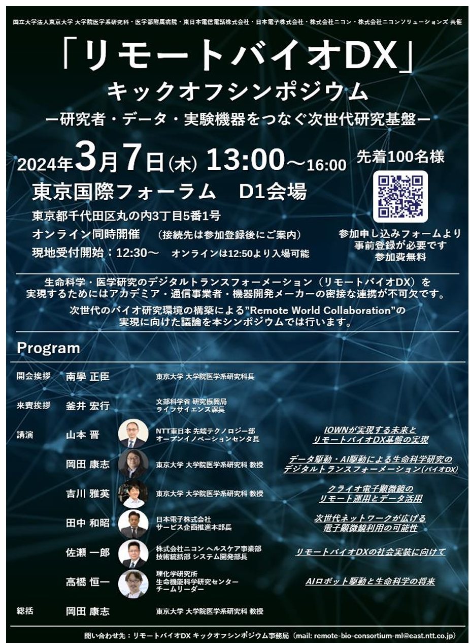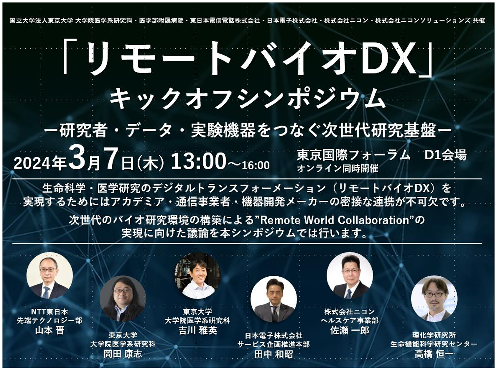 「リモートバイオDX」キックオフシンポジウムを開催!研究者・データ・実験機器をつなぐ次世代研究基盤の実現を目指します!