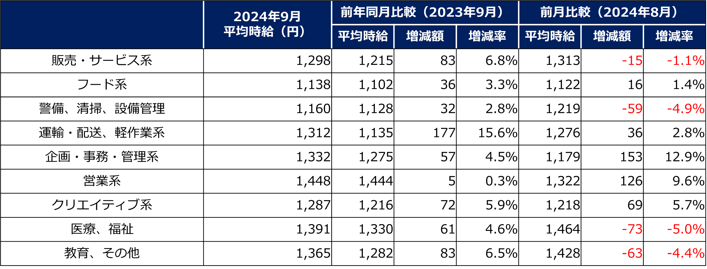 国内最大級の総合求人サイト『エンゲージ』アルバイト・パート募集時平均時給調査(2024年9月度)