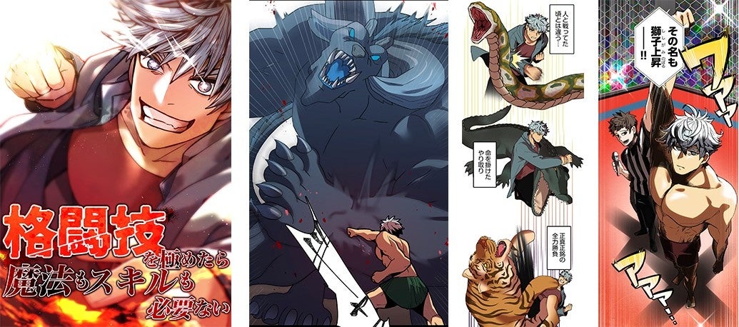 今作は、あらゆる格闘技を極めた男・獅子上昇が、己より強い奴を求めて異世界で戦いに明け暮れるオールカラーの格闘アクション。獅子上は人類最強に満足することなく、ライオンやゾウなどの猛獣を相手に技を磨いていたが、謎のゲートに吸い込まれたことでモンスターのはびこる世界へ転移。スキルを持つモンスターハンターたちと出会い、さらなる高みを目指していくさまを描きます。