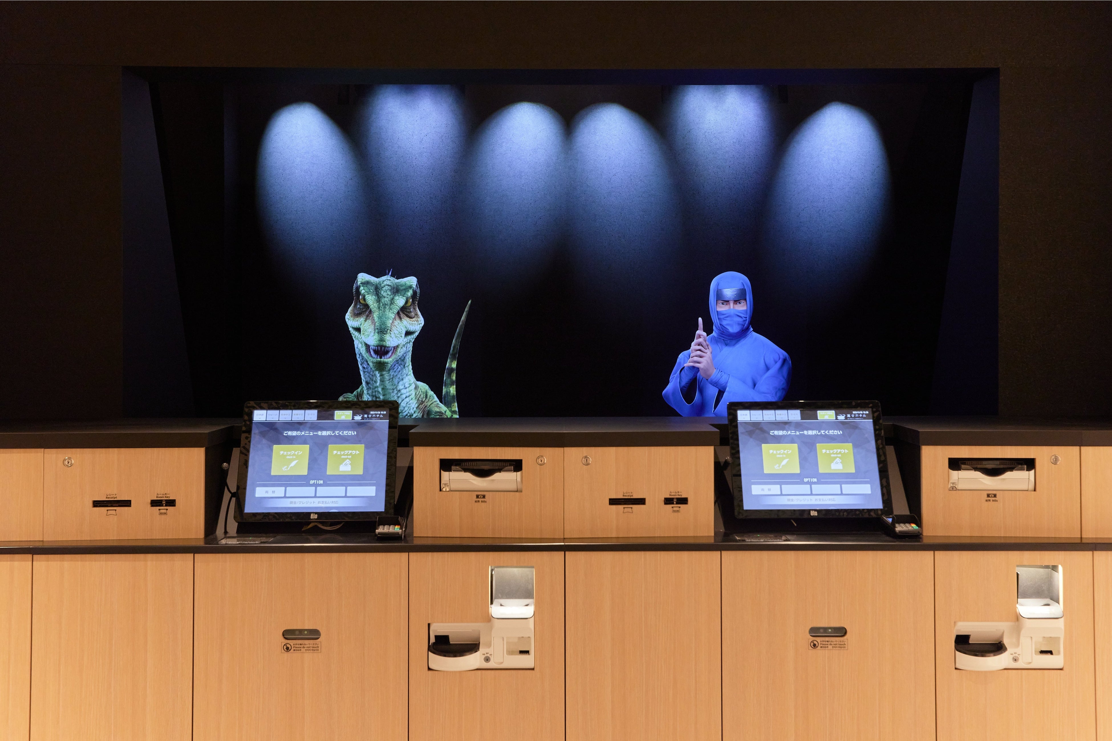 フロントには映像を投影する最新技術「光のホログラム」を導入、映し出された恐竜・忍者・執事・侍のキャラクターがチェックインをお手伝いいたします。チェックイン時にホテルスタッフとの接触が不要な安心の「非対面チェックイン」となります。ロビーには約1,800冊のマンガを有する「マンガコーナー」をご用意、お客様は滞在中無料でマンガをお読みいただけます。お荷物お預かりシステム「バゲッジポート」は、スタッフを介することなくお客様のタイミングでお荷物を預けていただけます。また、環境保護の観点から館内着やアメニティ類は客室に常設せず、お客様に必要な分だけご利用いただく「アメニティバー」を備えました。