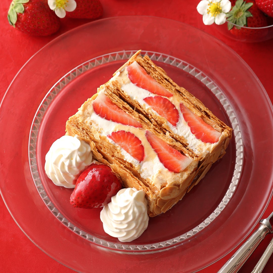 苺シーズンの定番「KIHACHIのナポレオンパイ」は、「ストロベリーフェア」期間を通してお楽しみいただけます。