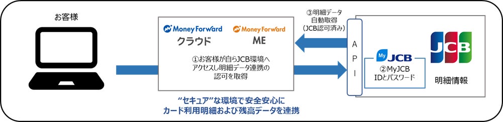 株式会社ジェーシービー (本社:東京都港区、代表取締役兼執行役員社長:二重 孝好、以下:JCB)は、JCBカード会員専用WEBサービス「MyJCB」と、株式会社マネーフォワード(本社:東京都港区、代表取締役社長CEO:辻 庸介、以下:マネーフォワード)が提供する「マネーフォワード ME」や「マネーフォワード クラウド」などの各サービスとのAPI(※)連携を開始しました。