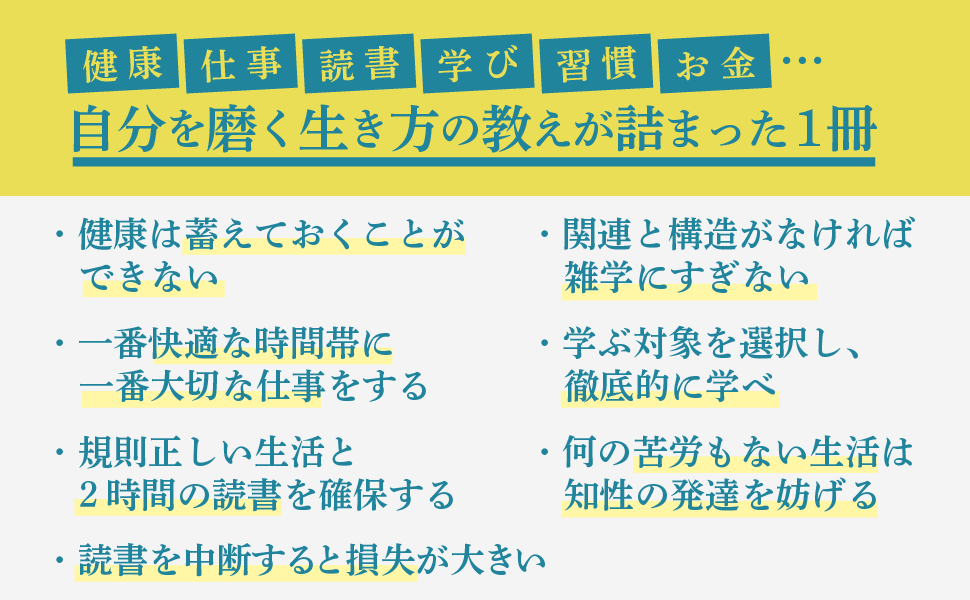「知的生活を志す人がまず最初にやらなければならないことは、規則正しい生活をし、時間を合理的に使う習慣を身につけること」とハマトンは説きます。そして毎日2時間本を読むことも勧めています。