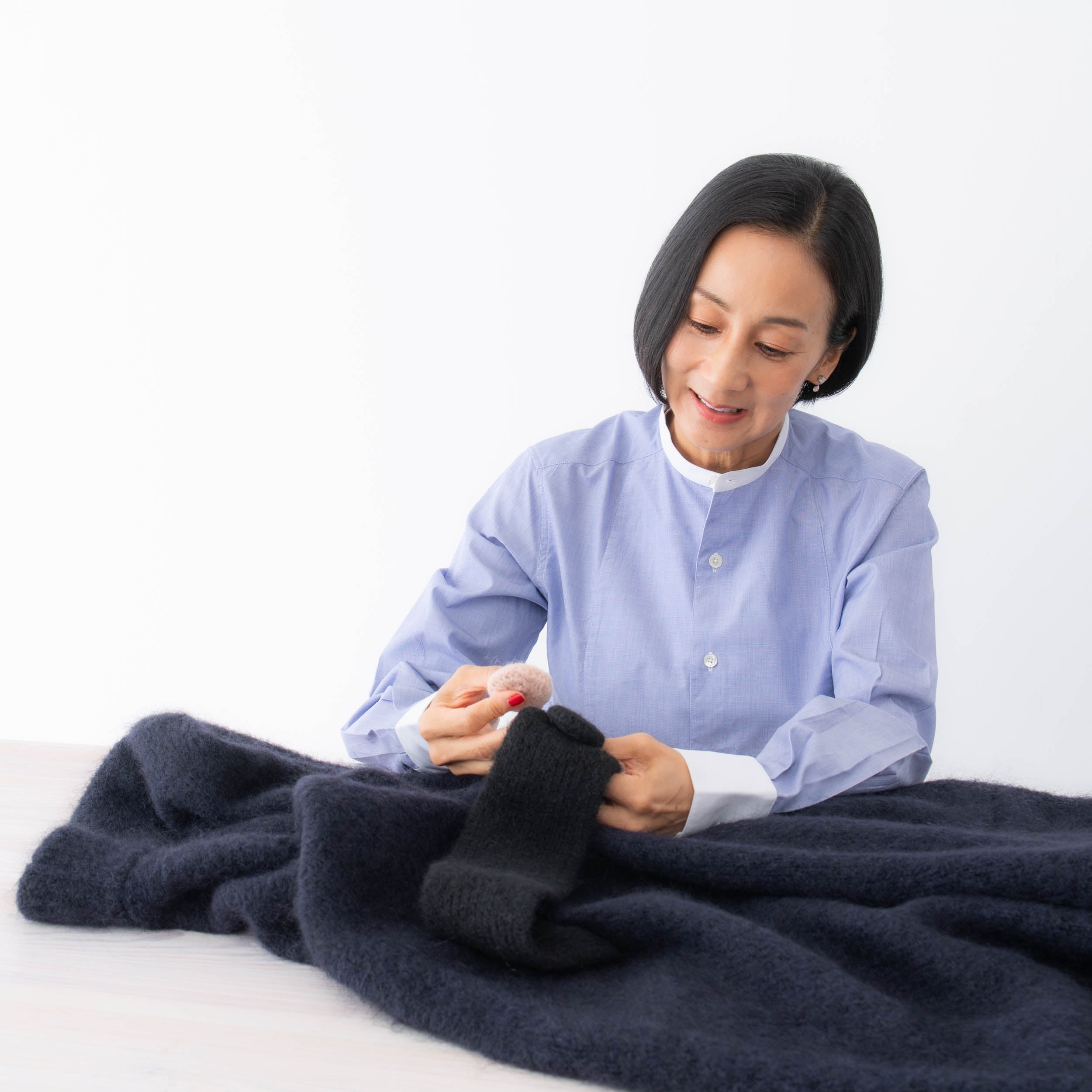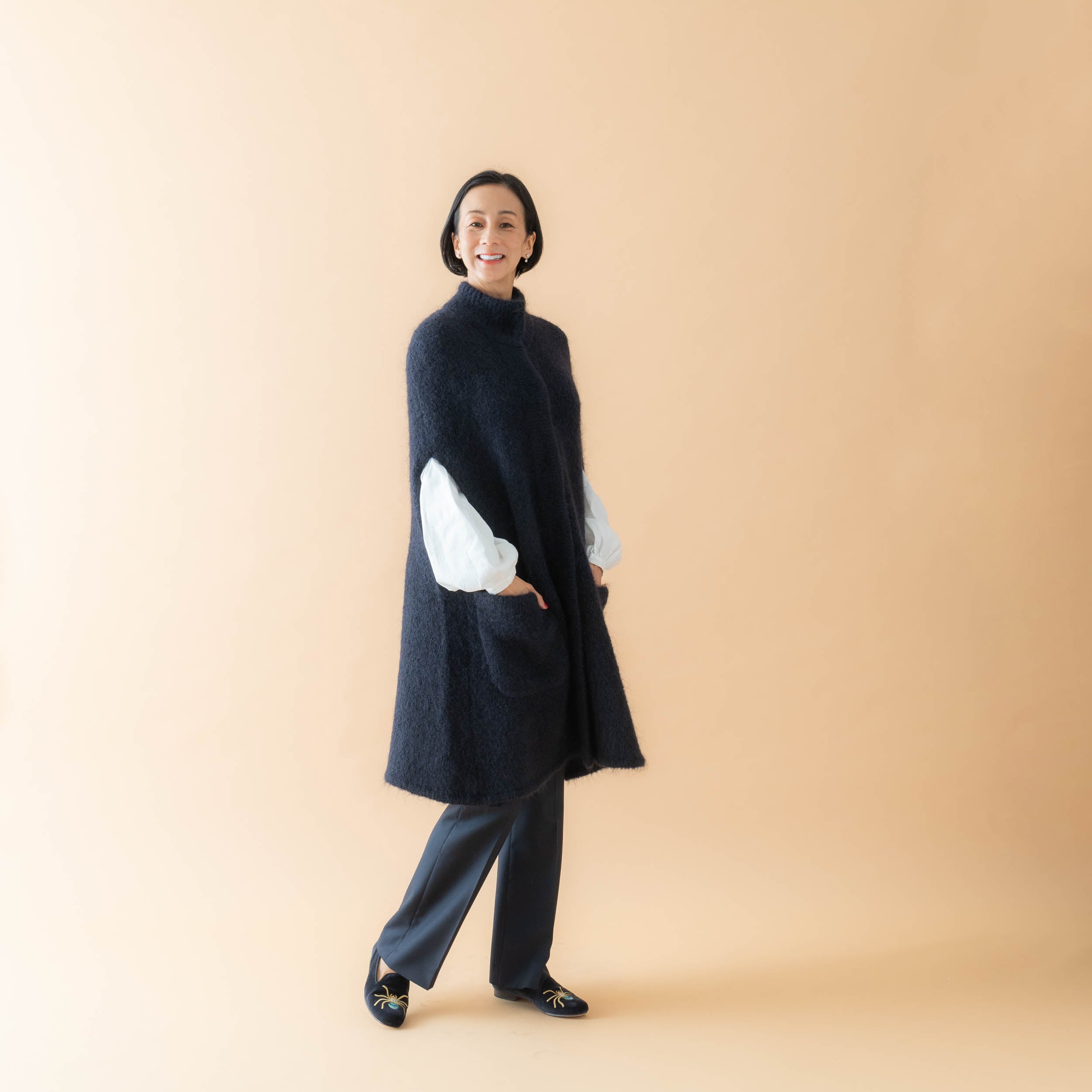 少し厚手のモヘア毛糸で、今までより少し丈を長くしてエレガントに!