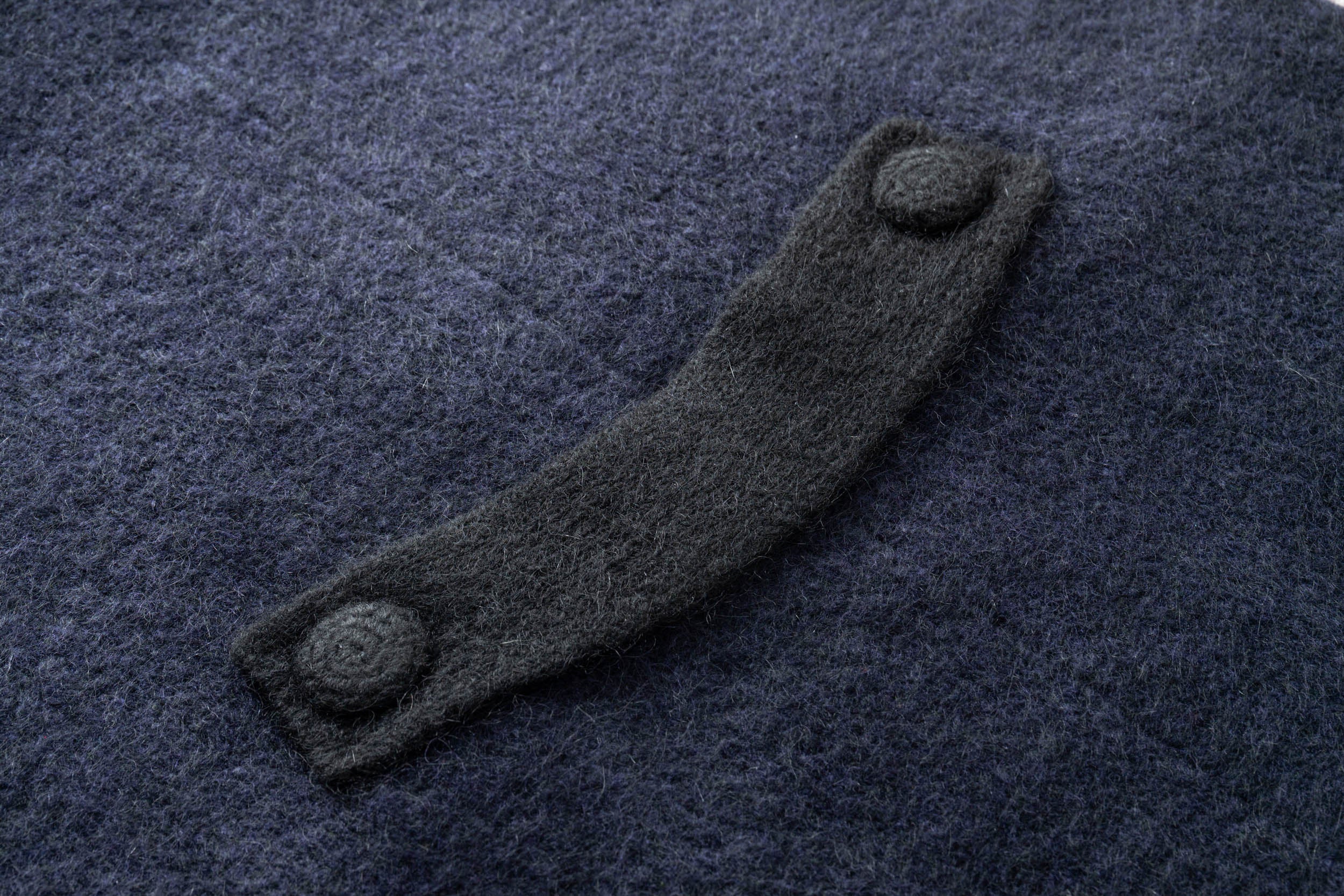 「黒のバッグベルトに大きなクルミボタン。色は悩んだあげく同色にしました」