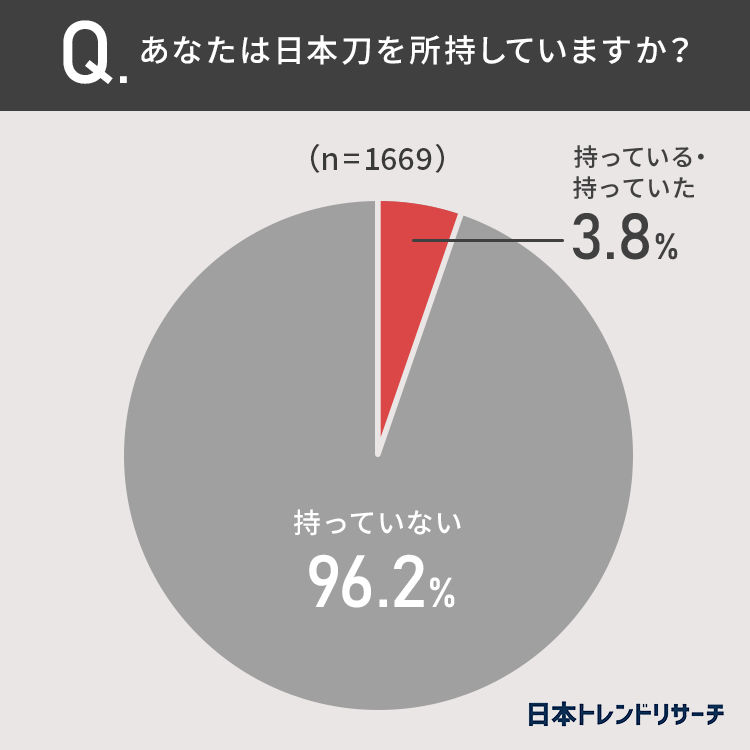 3.8%の方が、日本刀を「持っている・持っていた」と回答しました。