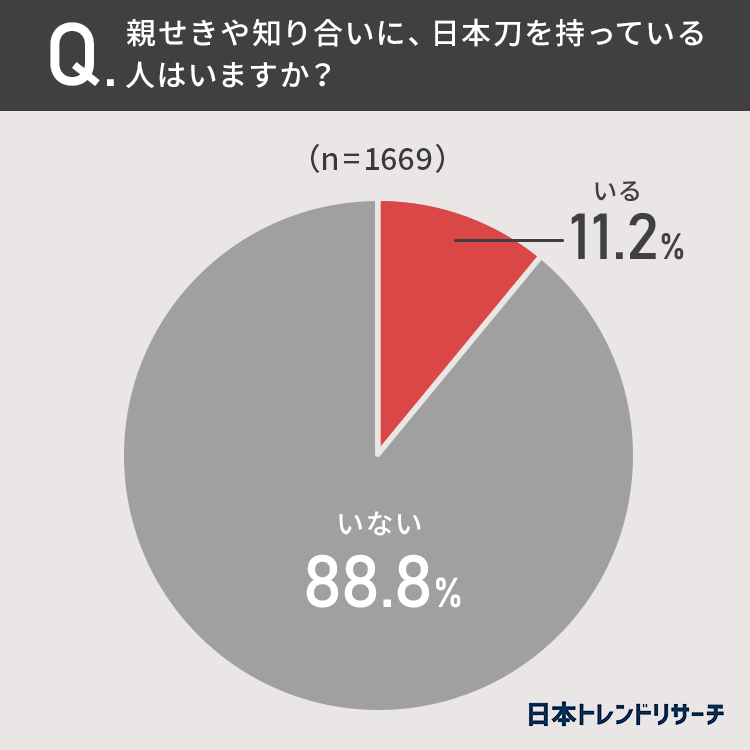 11.2%の方が、親せきや知り合いに日本刀を持っている人が「いる」と回答しました。