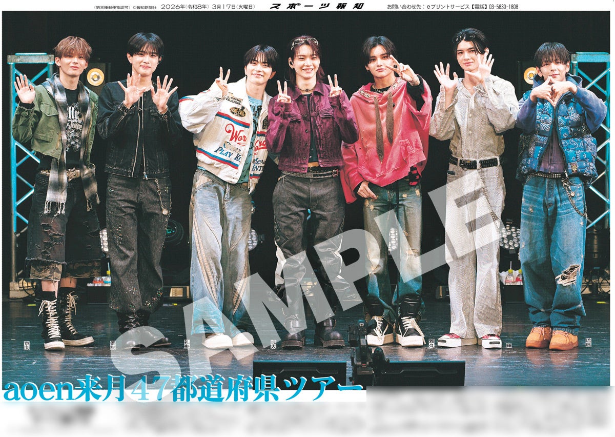 スポーツ報知を発行する報知新聞社(代表取締役社長・長谷川剛)は新聞の一部紙面をコンビニエンスストアのマルチコピー機からプリントできる「スポーツ報知コンビニプリント」サービスを展開中。スポーツ紙ならではの大きな写真を使った紙面をプリント版として販売しています。新たに3月17日付掲載、新世代JーPOPボーイズグループ「aoen」のセカンドシングル「秒で落ちた」発売記念イベントの様子を伝えた紙面を発売中です。全9種類になります。