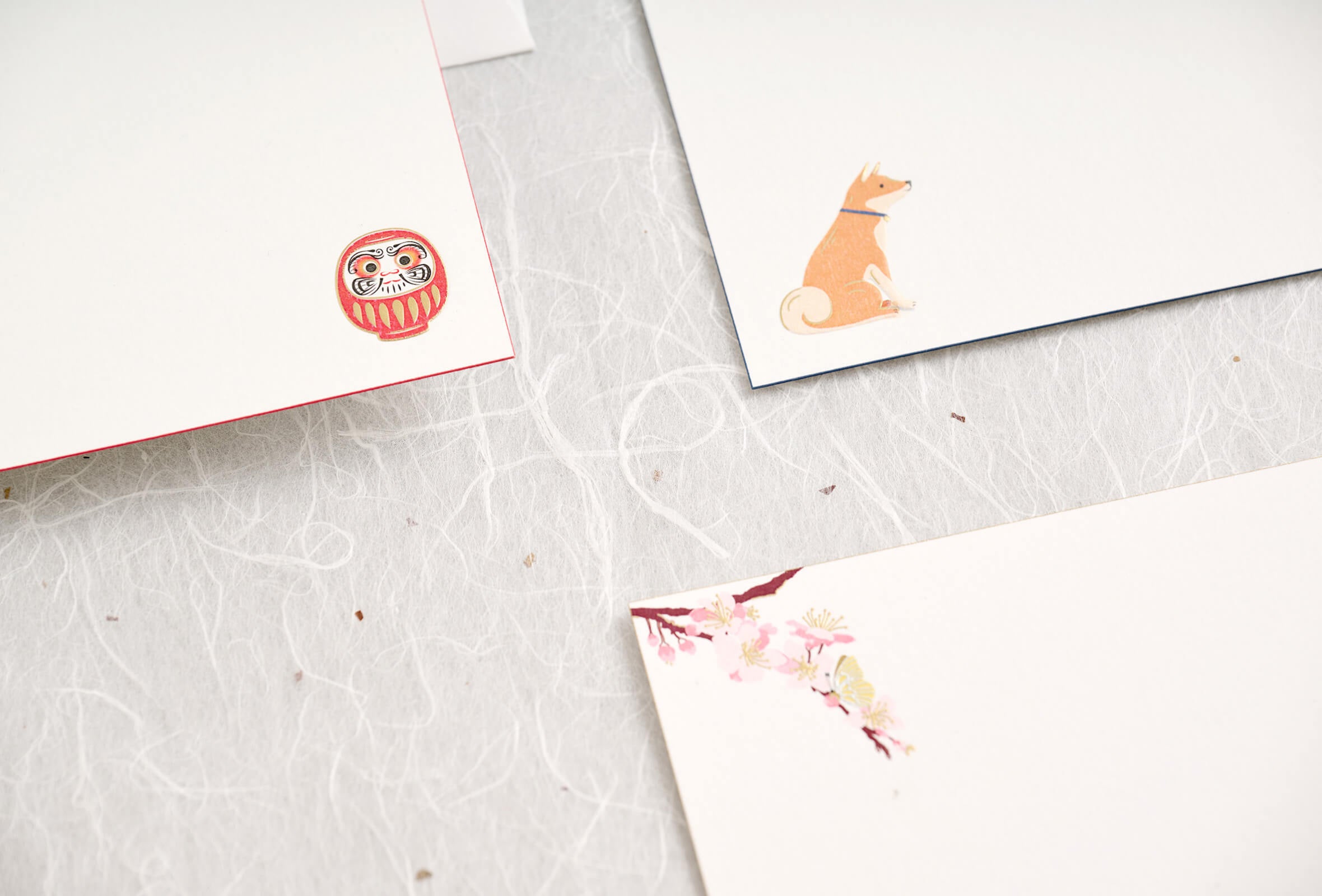 さくら、柴犬、だるま、まり、金魚 ー どこか懐かしくも愛らしいモチーフを、スマイソンのコレスポンデンスカードに添えました。