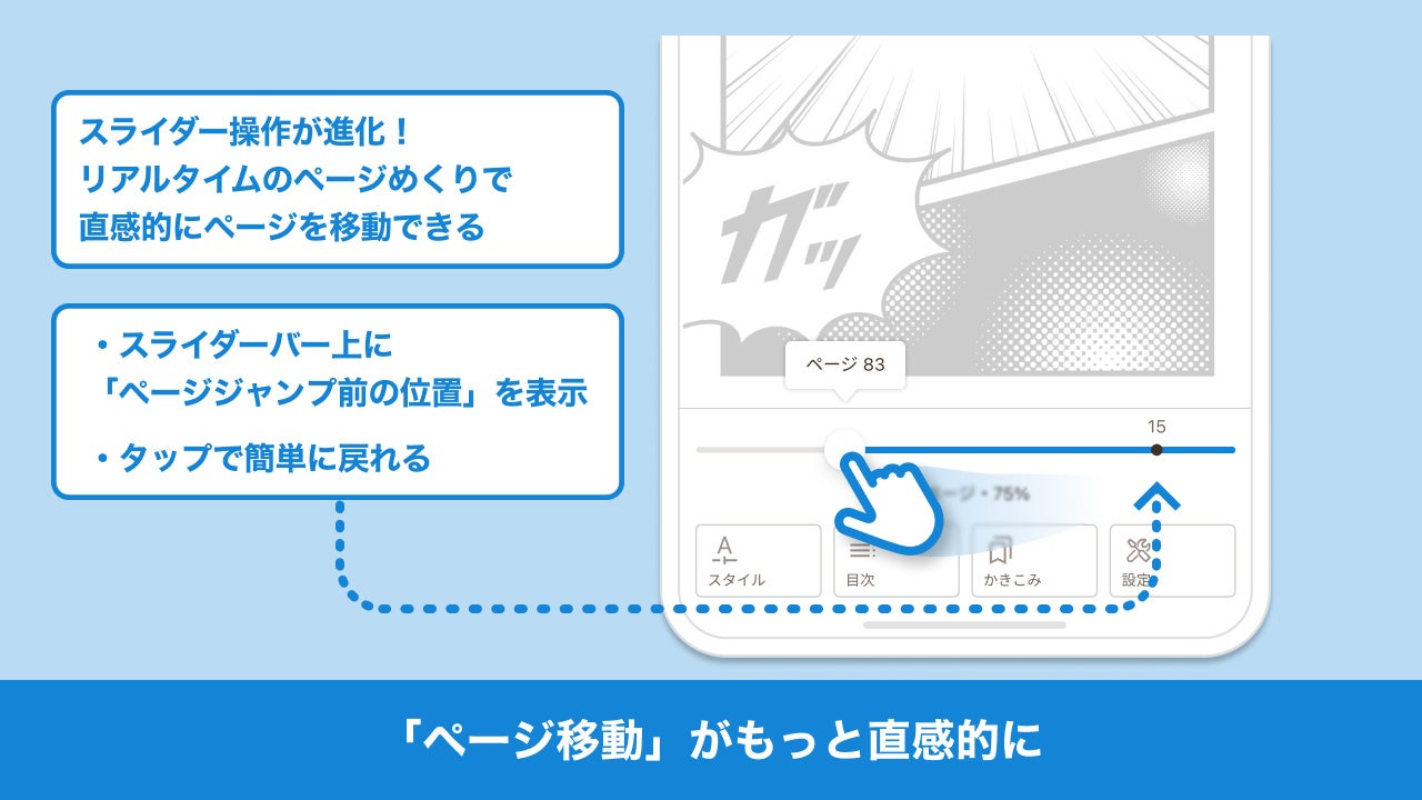 内容:読書中に他ページに移動したい場合、移動先のページをリアルタ