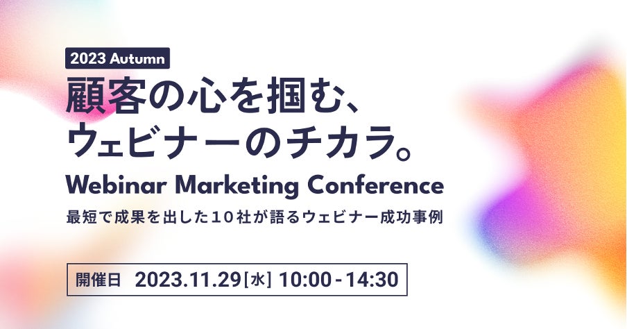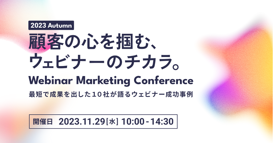 顧客の心を掴む、ウェビナーのチカラ。最短で成果を出した10社が語るウェビナー成功事例とは?11月29日(水)10:00〜 オンラインカンファレンスを開催