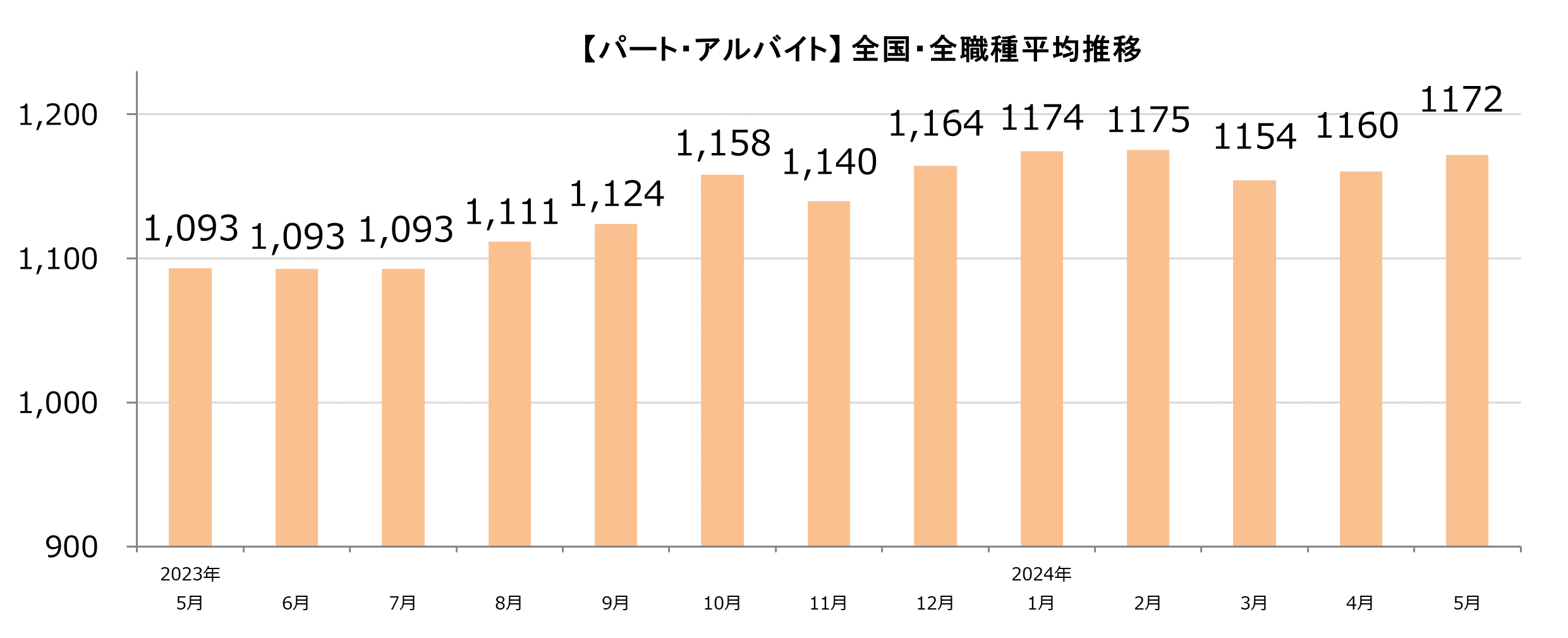 【2024年5月しゅふ求人の平均時給】パート・アルバイト:『1,172円』、派遣:『1,351円』/「飲食」系のパート時給、3ヶ月連続で過去最高を更新