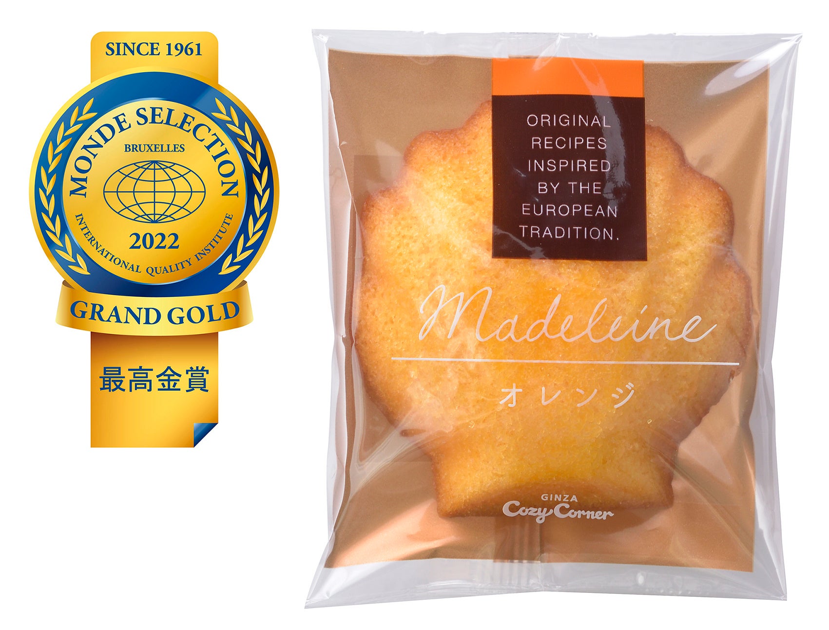 2022年度においてもオレンジマドレーヌが最高金賞を、バター・ショコラ・いちご・抹茶が金賞を連続受賞しました。