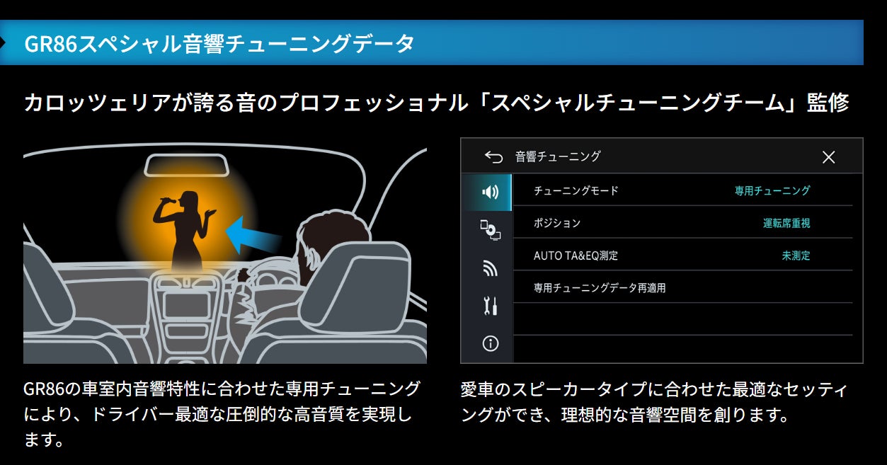 カロッツェリアWebサイトで公開中の「GR86」スペシャルコンテンツ内から、本イベントで使用する「GR86スペシャル音響チューニングデータ」を無料でダウンロードできます。