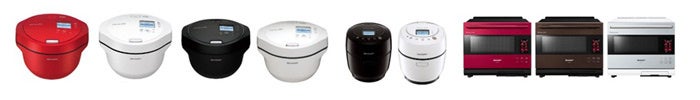左から 水なし自動調理鍋「ヘルシオ ホットクック」KN-HW24G-R/W、KN-HW16G-B/W、KN-HW10G-B/W、ウォーターオーブン「ヘルシオ」AX-XA30-R/T/S