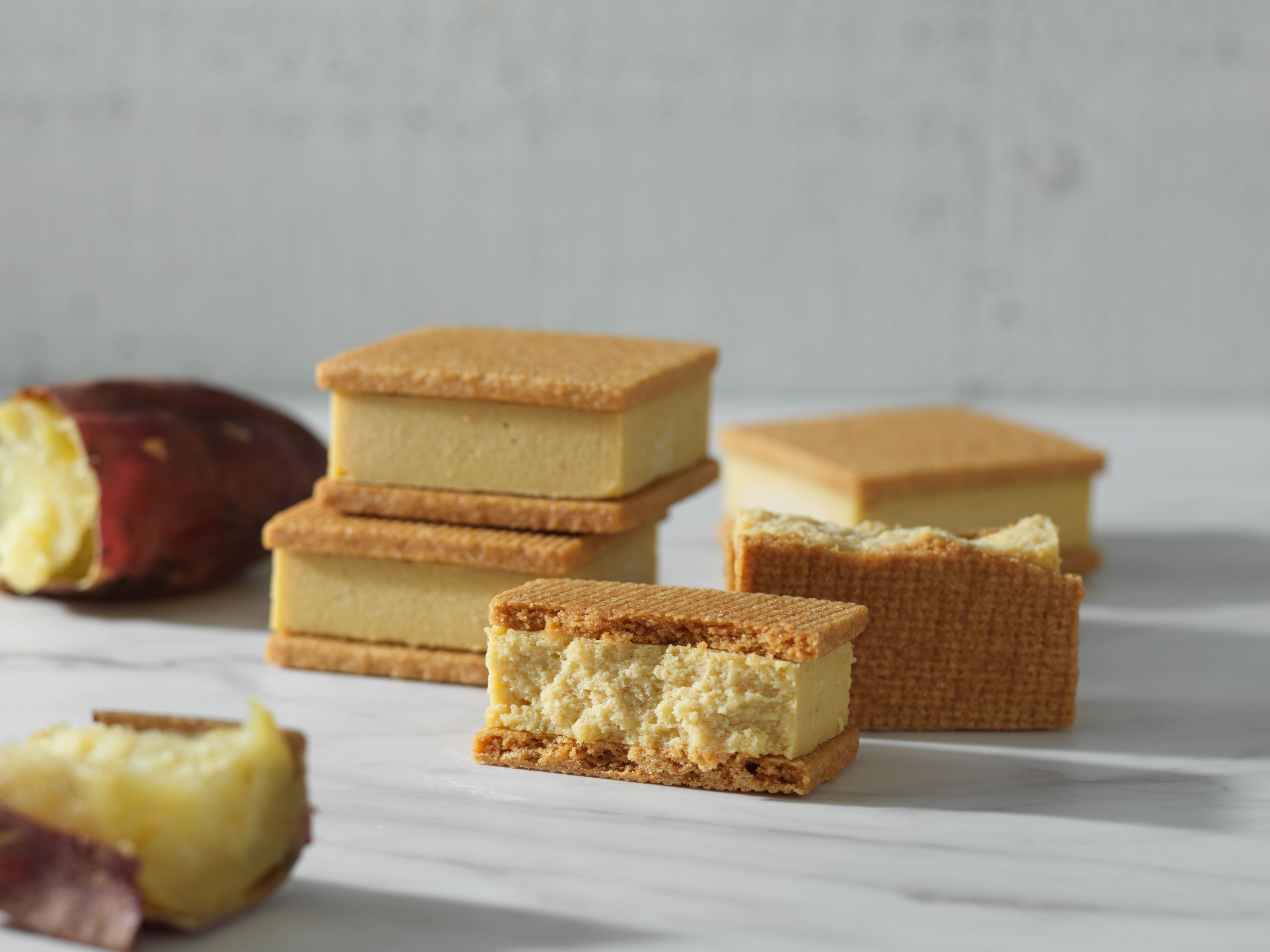 クセの少ないオーストラリア産クリームチーズが安納芋の甘さを引き立てます。ほっこりとした味わいに仕上げたベイクドチーズケーキをしっとりとしたサブレでサンドしました。