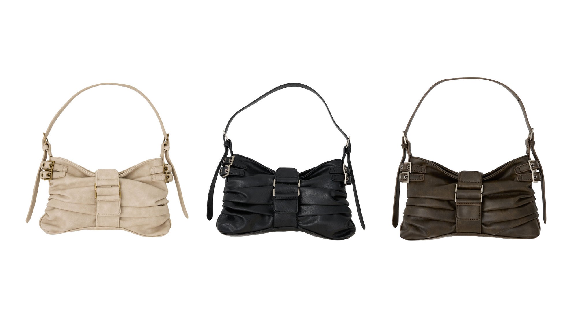 スエードライクなセットアップやサイドスタッズを施したデニムなど、90年代のムードを呼び起こすヴィンテージ感漂うアイテムを軸に、レイヤードスタイルも楽しめるレースアイテムや華奢見えするレイヤードブーツ、ガーリーな印象ながらもエッジの効いた風合いのギャザーが施されたバッグなどトータルコーディネートが叶うこだわりの詰まった全14型を展開いたします。
