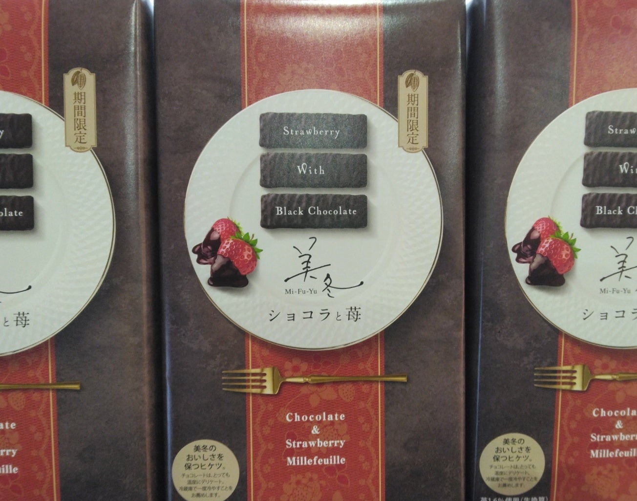 石屋製菓の人気商品「美冬」の期間限定ショコラと苺味が付いてきます。