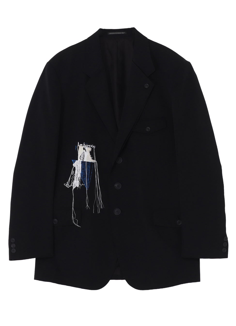 定番のウールギャバジン素材にデッサン画を刺繍で施したジャケット3型を展開いたします。