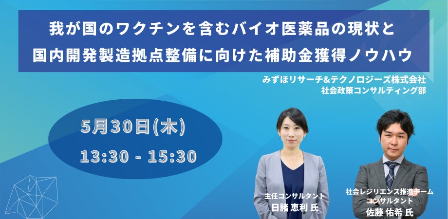 【JPIセミナー】「我が国のワクチンを含むバイオ医薬品の現状と国内開発製造拠点整備に向けた補助金獲得ノウハウ」5月30日(木)開催
