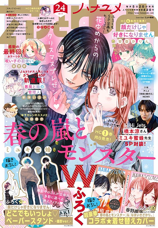 《株式会社白泉社》(本社:東京都千代田区、代表取締役社長:菅原弘文)は、『花とゆめ』2022年24 号を11月18日(金)に発売いたします。今号には、HiHi Jetsの橋本涼×『なまいきざかり。』作者・ミユキ蜜蜂のSP対談が掲載!さらに、SHISHAMO×「顔だけじゃ好きになりません」(安斎かりん)のコラボムービー公開を記念して、SHISHAMO×安斎かりんのSP対談も実現!