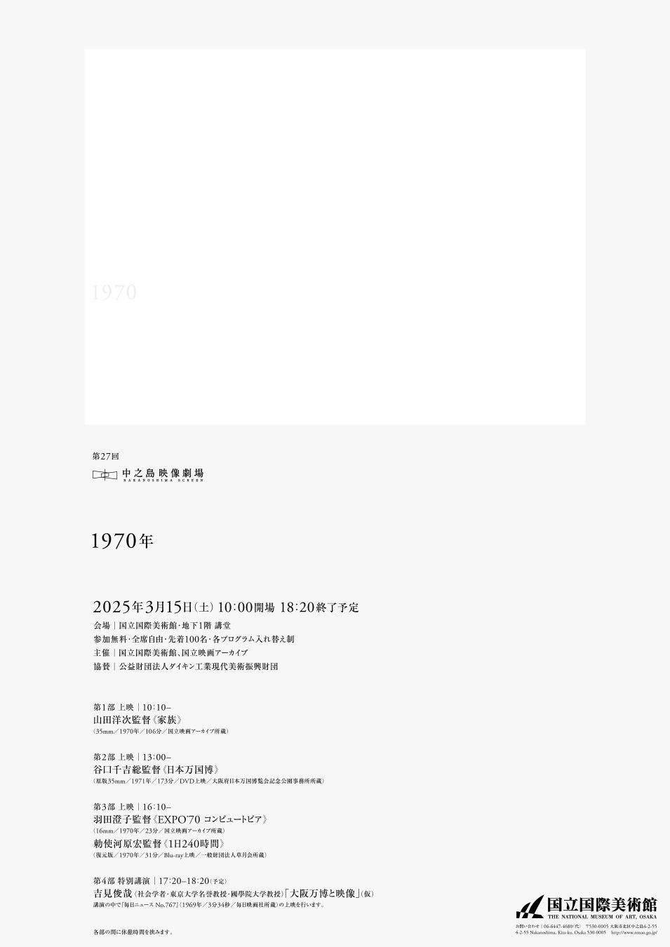 【国立国際美術館】第27回中之島映像劇場「1970 年」2025年 3月 15日(土)開催