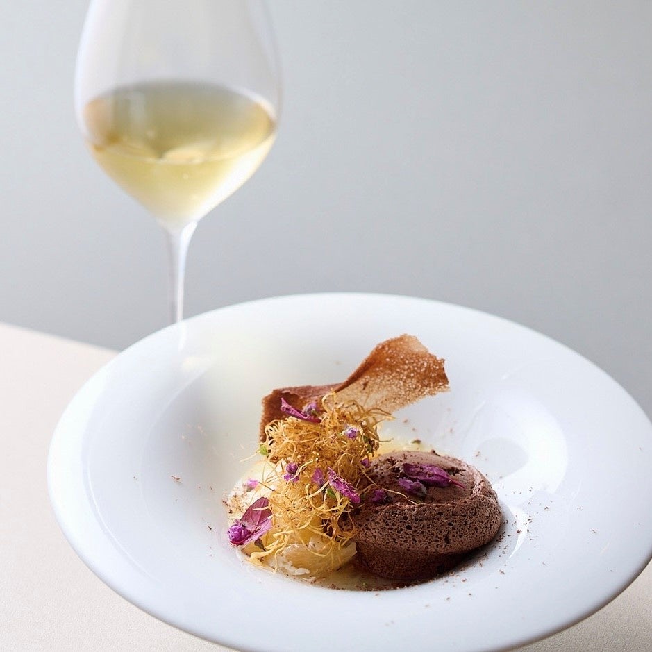 アシェットデセールやパフェと、ワインのペアリングを楽しめる「EMMÉ」。シェフパティシエの延命寺美也氏がカウンター越しに目の前で出来立ての限定メニューを仕上げ、ライブ感あふれるスタイルで提供します。