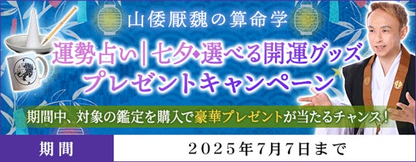 テレシスネットワーク株式会社(本社:東京都港区、代表取締役:鷹石惠充 https://www.telsys.co.jp/)は、2025年6月20日(金)より、月額公式サイト『山倭厭魏の算命学』にて、『運勢占い|七夕◆選べる開運グッズプレゼントキャンペーン』を公開いたしました。