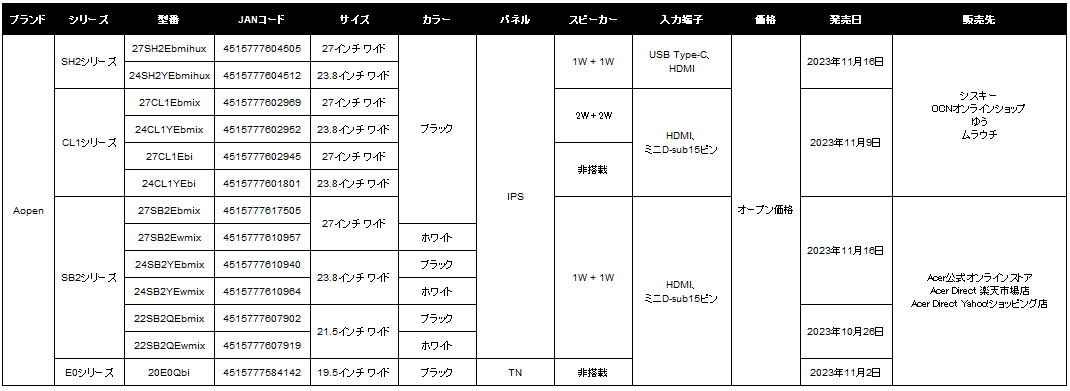Acerのもう一つのブランド「AOPEN」よりスタンダードモニターのラインアップ拡充!全13製品が一挙登場。