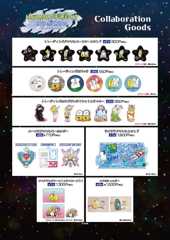 YouTubeの登録者は129万人!UUUM所属の動画クリエイター「はじめまして松尾です」とのコラボが決定。コラボカフェで販売していたグッズも併せて一部店舗、公式通販にて9月28日より販売します。